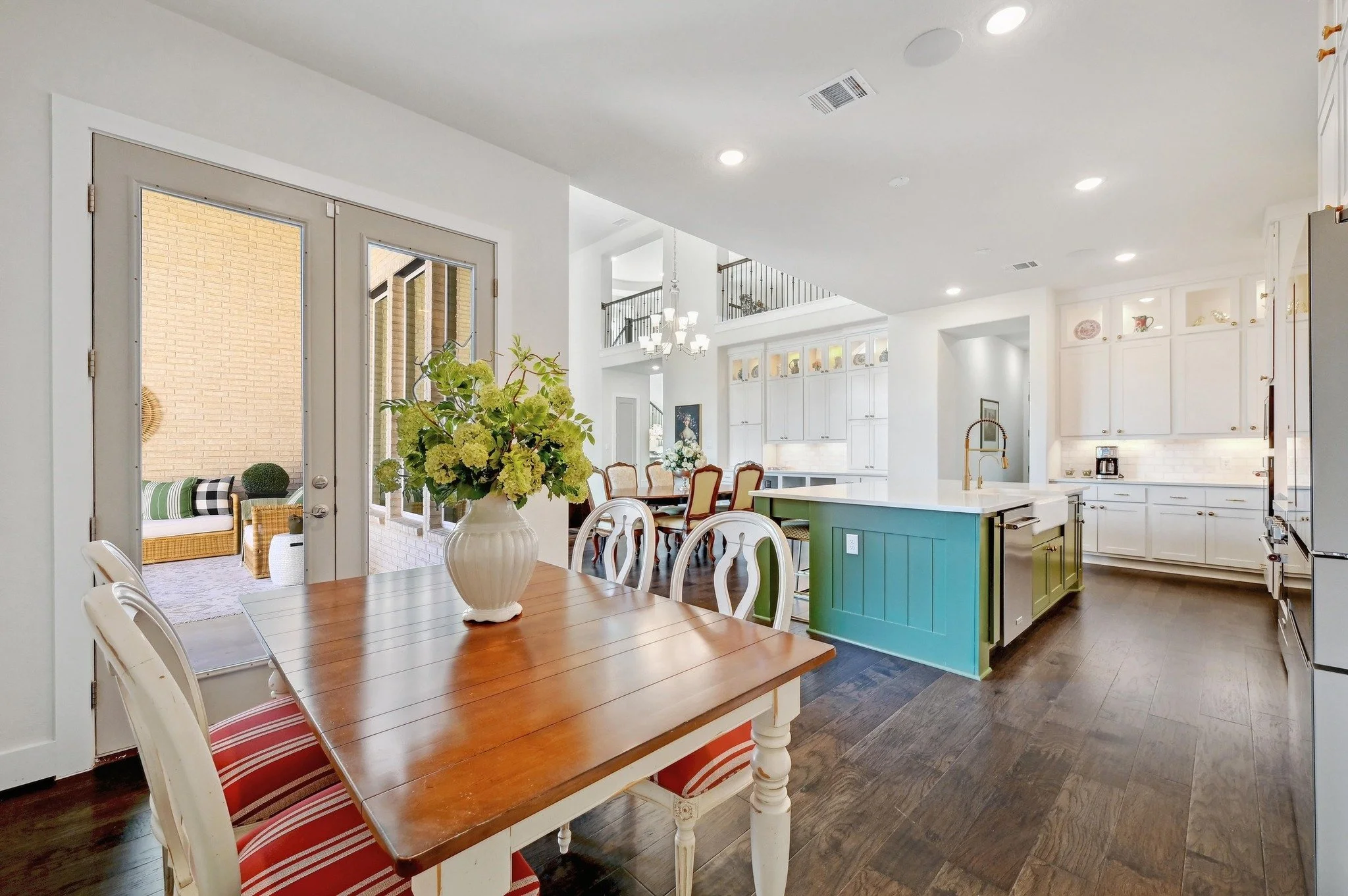 Welcome to this exquisite Highland Home in the lovely, gated community of Front Gate in Fair Oaks Ranch. This traditional style home features 5 bedroom, 5.5 bathrooms, was built in 2023, and is situated on a spacious 0.33-acre lot with a private backyard.Thoughtfully designed with luxurious finishes and modern conveniences, this two-story brick home offers an open layout, vaulted ceilings in the living room, and a spiral staircase that makes a striking first impression. Interior features include a gourmet kitchen equipped with KitchenAid appliances, a six-burner gas stove with a professional-sized oven, a second oven, a pot filler, a reverse osmosis system, and a water softener. Elegant quartz countertops, a marble backsplash, a farmhouse sink, a built-in kitchen hutch, cabinet lighting, and upper kitchen cabinets with glass doors enhance the space. The spacious living areas include a large loft with a window seat, an office, and a media room; offering a perfect balance of function and enjoyment. The primary suite includes a luxurious bathroom with a standalone tub, a vanity seating area, and ideal closet. Additional features include wood floors throughout the downstairs, plush carpet upstairs, and brass hardware throughout to add warmth and elegance. Exterior features include a three-bay garage for ample storage and parking, a covered back porch with built-in central speakers inside and out for seamless enjoyment, mature trees, and an irrigation system. It is wired for security for peace of mind and has the two AC units for optimal comfort year-round. This beautifully crafted home offers the perfect blend of luxury, function, and style in an exclusive community. Don't miss the opportunity to make this stunning property yours! Schedule a showing today.